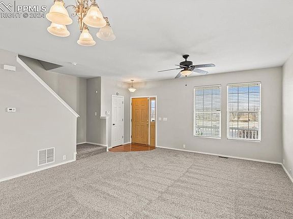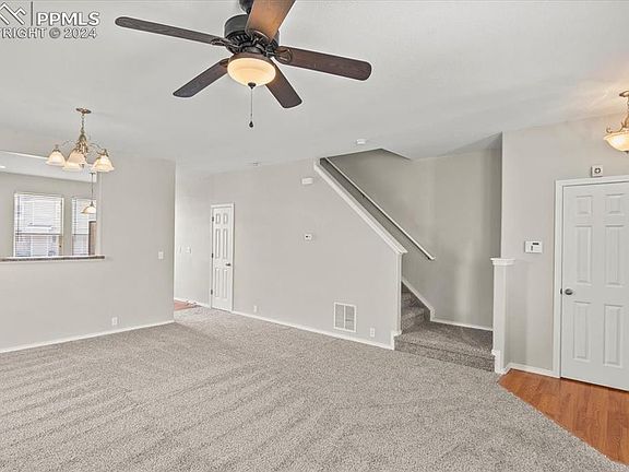 This exceptional end unit townhome is ready for immediate occupancy. Upon entry, you'll be greeted by fresh two-tone paint and newly cleaned carpets in the spacious main-level living room, creating a welcoming ambiance. The kitchen is a chef's dream, boasting ample cabinet space for storage and generous countertop space for meal preparation. A convenient cut-out into the living room encourages socializing while cooking. Upstairs, the primary suite awaits, complete with an attached full bathroom for added comfort and convenience. Two additional bedrooms, along with another full bathroom off the hallway, complete the layout of this charming townhome. Outside, an open area beckons for relaxation and enjoyment. The complex's strategic location provides quick access to major thoroughfares such as 85/87 and I-25, as well as a plethora of shopping options nearby. Don't miss the opportunity to make this wonderful unit your new home. Stop by for a viewing today!