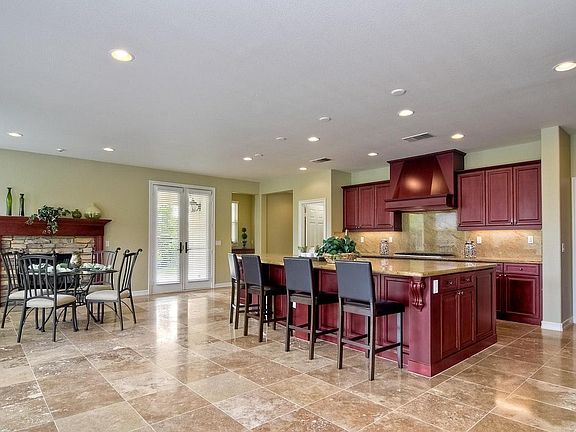 Spacious kitchen with a huge island and granite counter tops. Travertine flooring. Large back yard with room for a family large or small. Owner pays for gardener.