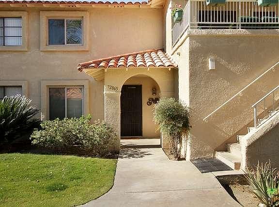 Furnished 2bed/2.5 bath townhouse style condo with 1258 square feet of desert living space set amid a resort style community highlighted w/ 12 Tennis Courts, 6 Pickle ball Courts, Fitness Center, Clubhouse and a dozen Sparkling Pools. Two bedrooms w/ en suite baths and beautiful window views from each room. Living room area opens to dining space which is adjacent to kitchen with newer appliances, granite counter tops and a pantry closet. Large guest bath downstairs is also home for your stack washer & dryer. Private and enclosed patio with gas bar-b-qua is perfect for dining al fresco or simply relaxing and enjoying the views. A gate from the patio leads to wandering walkways accented by rolling hills of grass, gardens and a variety of mature trees with pleasing views of the mountains. Enjoy dining out, shopping or browsing the art galleries and fine stores located minutes away at the popular El Paseo district.
