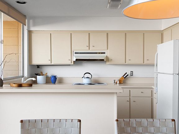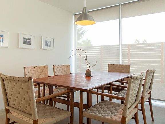 This beautiful single-story 2-bedroom 2-bath condo provides complete privacy and comfort. It has kept some of the magic of the original Sandpiper units, new concrete floors and a gorgeous mountain view from the patio! The condo itself is very private, but once you step outside the front patio, you are in a garden area, with the amazing community pool. A truly wonderful area within the Sandpiper development. We are located within the Sandpiper development (designed by the famous architect William Krisel), and very close to the the famous to El Paseo, which is lined with wonderful boutiques, restaurants, and art galleries. Right across the street are grocery stores, restaurants, Westfield Mall, coffee shops, and a nearby movie theater. Everything you need is nearby. SEASONAL RENTAL - MAY TO SEP $2,500 - OCT TO DEC $3,750 - JAN TO APR $5,000