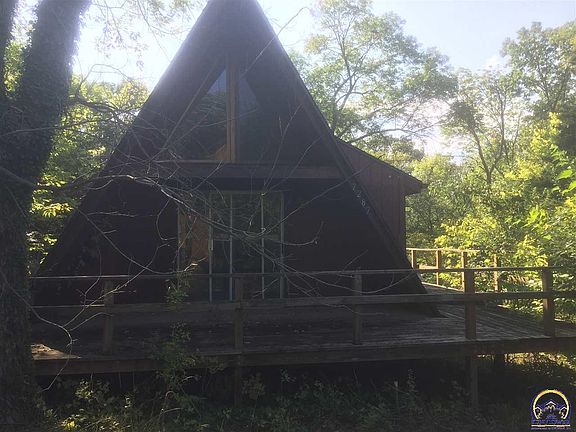 Want to be close to Lake Perry for little money?? $45 K for this secluded fun and interesting 2 br. (potential for more) 1 bath A Frame style home with wrap around deck, double garage. 1488 sq. ft. Wooded w/ extra lot. Nice hardwood/tongue & groove. Close to the lake and boat ramps etc.*Handyman special* Some new remodeling has been started but home interior is under construction. Sold "as is " HUGE POTENTIAL here!!
