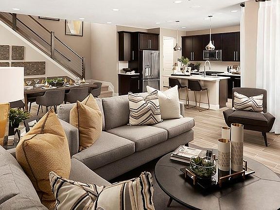 Model home for sale! Open floor plan features a spacious kitchen with eating area perfect for gatherings. Kitchen includes stainless steel appliances with gas range, upgraded kitchen maple cabinets in a Java finish, and quartz counter tops. Upstairs find a loft area and 3 bedrooms, including the master suite, which includes attached bath with double bowl vanity and quartz counter tops. Downstairs, the finished basement adds an additional living/recreational area rec and another bathroom. Additional features include an attached 2-car garage, a covered patio, professional landscaping, and sprinkler system. Stop by the sales office today for more information!