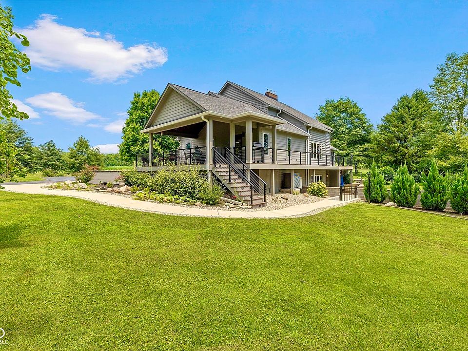 Discover the perfect blend of luxury, charm, and country serenity in this beautifully remodeled 4-bedroom home situated on 5 peaceful acres. This property boasts a gorgeous in-ground pool with a pool house and a professionally landscaped exterior, ideal for both relaxation and entertaining. Step onto the inviting wrap-around porch or enjoy tranquil evenings in the screened-in porch and oversized outdoor sitting/dining area, where you can take in breathtaking sunsets and sweeping views for miles. Inside, the home shines with thoughtful upgrades, including a state-of-the-art kitchen and a stunning new primary suite wing featuring a luxurious bathroom, heated floors, dream walk-in closet, and convenient laundry room combo. The walk-out lower level has also been fully updated and includes a workshop space perfect for hobbies or projects. A century-old barn and greenhouse add even more character and functionality-offering ample space for storage, toys, or even a small hobby farm. Located just 5 minutes from I-65, this serene escape offers easy access to Columbus, Bloomington, and downtown Indianapolis. If you're looking for a peaceful haven with modern conveniences, timeless charm, and unbeatable views, this property is calling you home.