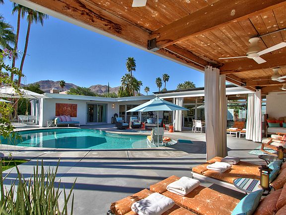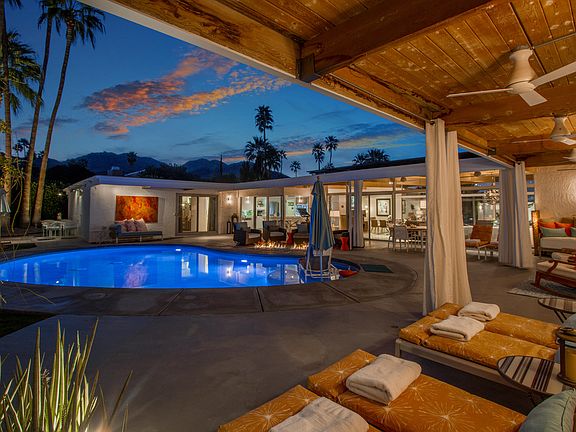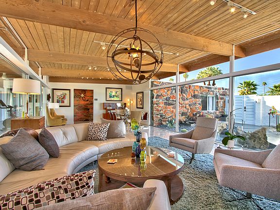 Architect John Moyer put his best foot forward on the design of this premier mid century modern beauty. Built in 1956, stunning design and architecture accentuate this south facing 3,906 sq ft home. Four spacious bedrooms and four bathrooms with great separation of rooms include an over 900 sq ft master wing with views of the surrounding mountains. Clerestory windows & tongue and groove ceilings accompany the clean lines that will make any mid century or modern architecture lover proud. Chef's kitchen features all Dacor appliances, Bosch refrigerator plus a butler's pantry. The south facing backyard has a sparkling kidney shaped pool, a fire pit, outdoor cook station, misting system & beautiful covered patio with a continuance of the toungue & groove ceiling. This home was featured in 2020 Modernism and once you see it, you will know why. The spacious media room is the perfect space for entertaining or just being cozy for movie night. Owners installed 2 new 5 ton Lennox energy efficient air conditioners in 2021. All bathrooms were completely remodeled end of 2021. Bel Air Road is a prestigious street in south Palm Desert minutes from El Paseo Drive where shopping and dining highlight the perfect desert lifestyle.