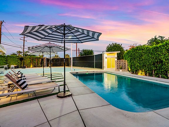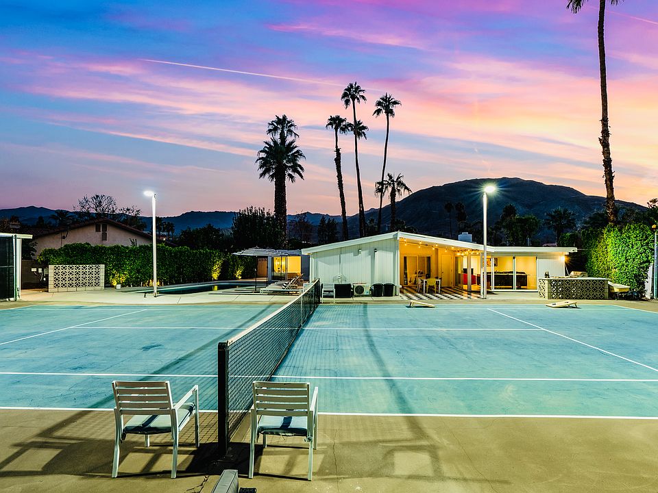 Discover luxury living in the heart of Palm Desert! Just a mile from the iconic El Paseo, known as the "Rodeo Drive of the Desert," this spacious home is within walking distance to Trader Joe's, the Palm Desert Shopping Mall, and more top shopping and dining destinations. The main house offers 4 bedrooms, 2 bathrooms, two cozy living rooms, and a fully-equipped kitchen, with a private guest studio complete with a full bathroom for added privacy. Enjoy stunning mountain views and a range of resort-style amenities, including a private tennis court, a sparkling heated swimming pool, a ping pong table, and a pool table for endless entertainment. Outdoors, you'll find a BBQ area, a cozy firepit, a single-car garage, and a large driveway with ample parking. Embrace the ultimate Palm Desert lifestyle in this exceptional property! 1 Month Lease $500 monthly credit towards utilities (electric/water/gas). Any excess will be charged to the tenant. $350 Pet Fee max 2 Weekly housekeeping is offered for an additional charge