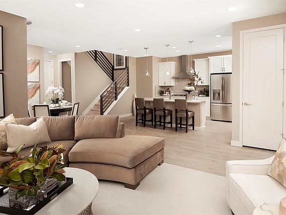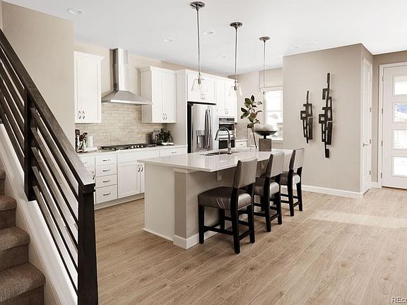 Beautifully upgraded model home features an open layout with spacious kitchen with eating area perfect for gatherings. Gourmet kitchen includes stainless steel appliances with gas cooktop, stainless hood, double ovens, refrigerator, upgraded kitchen maple cabinets in a white icing finish, and quartz counter tops. Master suite includes attached bath with double bowl vanity and quartz counter tops. Finished basement features a rec and bath. Laundry includes utility room package with washer and dryer. Stop by the sales office today for more information!