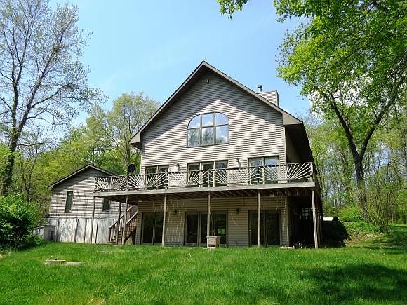 DREAM HOME in the WOODS !Main floor neutral color, Master Suite, stairwells main floor bedrooms, just professionally painted.Wide open main floor living, fireplace, soaring cathedral ceiling, breath-taking views of woods, stocked pond with steel shore wall, overflow control, newer aerator, newer hi quality dock !! 2 of 3 baths have brand new tile floors !Upstairs Master suite offers twin walk ins, cathedral, French doors overlooking main floor.. high window to drink in views from above !! Newer kitchen with granite counters, newer stainless appliances, breakfast bar ! all new concrete, new stamped patio, and new garage floor with drains. No matter what season, be surrounded by nature's beauty !! Walkout LL boasts fireplace, wide open family/rec area with room for billiards table ! Wet bar, storage galore, more awesome views ! Hi quality Bose Surround Sound, bath, huge den, workout, theatre or storage room w/ fresh paint, brand new carpet. Norweco Septic, ADT Alarm Sys, Auto whole house Generator, security system, and so much more !!