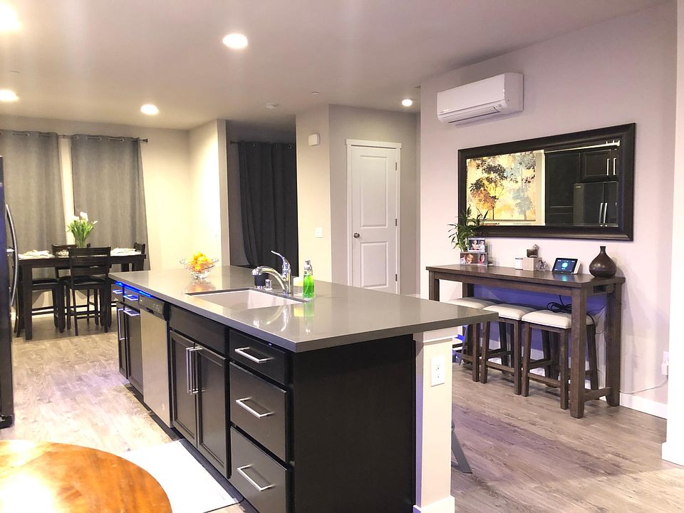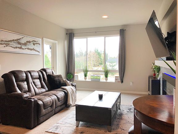 Welcome home to this modern townhouse with a single family home feel in a secure, gated community. Open plan kitchen with farmhouse sink, ample storage cabinetry and quartz countertops featuring a large 10' island, perfect for entertaining. Fully fitted with Samsung refrigerator with water and ice dispenser, dishwasher, microwave and gas range. Living room with large windows bring in extra light. The electric fire place provides additional heat as well as a focal point in the room. Fully articulating TV mount stays with the home and makes for easy TV installation. You will find a private covered patio with a Southern California feel that is not facing any other units and is the perfect place to spend summer evenings. The master suite is bathed in natural light and has peekaboo views of the Cascades. It features a full en-suite bath with double vanity granite counters and large shower, that leads in a large walk-in closet. Two more bedrooms, side by side laundry and a full second bathroom with tub complete the upstairs. The first floor has a finished, 2-car tandem garage with epoxy flooring, mirrored cabinets with ample storage, as well as a convenient dog space for your furry friends or additional storage. The garage also comes with a wall mounted 50" Samsung TV. The cozy, low maintenance backyard is fully fenced and finished with turf and color changing ambient lights. Energy efficient tankless water heater provides endless hot water and a low cost heat and AC ductless mini split heat and cool the home all year. The gated community, Village Crest, is comprised only 30 units and is conveniently located in South Everett, close to Boeing and easy access to I-5. Tenant is responsible for all utilities. Homeowner covers HOA which covers landscaping. Average monthly utility costs: Gas: $25, Electricity: $60, Water/sewer: $110, Garbage: $45. Minimum 1-year lease Parking: 2 car, finished garage and driveway. No smoking or vaping - Income must be at least 3x the monthly rent - Must have a credit score of 700 or higher to apply - Pets considered on a case-by-case basis with pet deposit - Renter's insurance required with owner listed as additionally insured