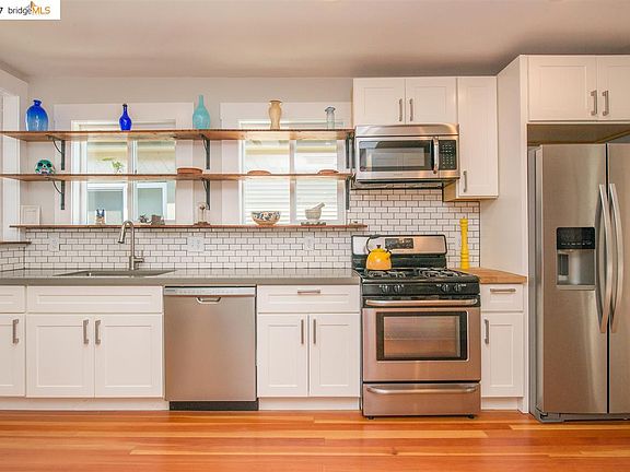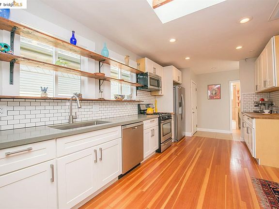 Live in one, rent the other! Stylish North Oakland duplex w/ contemporary updates, original craftsman charm, and amazing urban oasis backyard perfect for dinner parties and BBQs! Ideal for an owner occupant, the upstairs unit features hip details, 3 bedrooms, 1 bathroom w/ modern updates, and an open Kitchen - Living area. Skylights flood the living room with light & show the beautiful exposed wood beams. Kitchen features newer cabinetry, subway tile backsplash, concrete and butcherblock counters, and stainless appliances including dishwasher & gas range/oven. Downstairs unit features original built-ins, hardwood floors, crown molding, & French doors, with lots of storage space, updated eat-in kitchen, tiled bathroom, & tasteful carpet in back bedroom. Each unit has an on-demand water heater and shares the exterior laundry closet in back. Gated arbor and mature trellises give property curb appeal & privacy. Pretty & versatile backyard w/ deck, stone pathway, room to play & entertain!