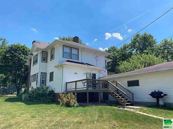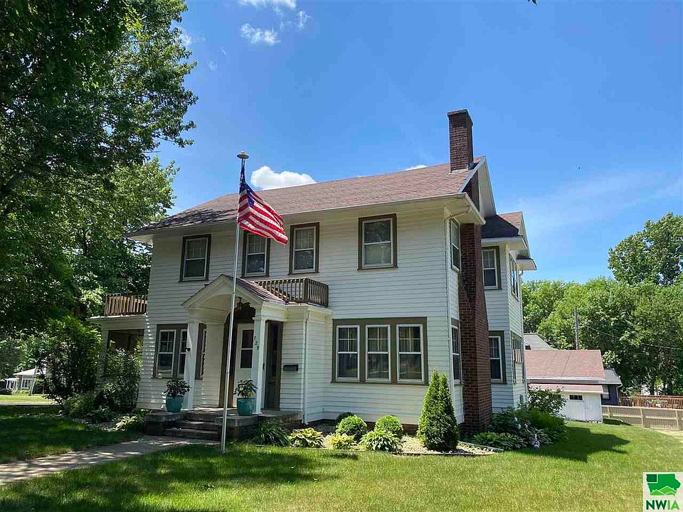 A perfect blend of yesterday's craftsmanship and charm with today's modern conveniences in this stately two story located in a Historic District of Le Mars. Nestled on the corner of the Boulevard and tree lined Central Ave, this home offers 4+ bedrooms, 3 bath locations, 2 home offices and 5 garage spaces! Gorgeous woodwork, grand staircase, wood floors, screened in porch, pocket doors and built ins. Huge eat in kitchen with built in desk, pantry and slider access to one of the two decks. Plenty of storage in the walk up attic and partially finished lower level which could allow for a 5th bedroom and offers a shower bathroom. Quick access to Foster Park, elementary, middle and high school and downtown shopping. You can have a front row seat to all of the parades. Take a peek at this beautiful home today! All measurements are approximate.