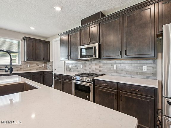 Step into your dream home, built in 2024 and barely lived in. Skip the wait for new construction with this turnkey residence. The gourmet chef's kitchen features quartz counters, upgraded cabinetry, spacious pantry, and premium appliances including gas stove, microwave, and dishwasher. Enjoy serene indoor-outdoor living with a sunroom, extended screened patio overlooking a pond and fountain, stylish blinds, and tray ceiling. Retreat to the luxurious owner's suite with a walk-in tile shower. Added functionality includes an extended garage with epoxy floor, custom lighting, upgraded laundry with sink, tankless water heater, and softener pre-plumbing. Across from a walking path to the clubhouse, you'll enjoy resort-style amenities: restaurant, fitness center, and pool. This home blends modern luxury, thoughtful upgrades, and an unbeatable location—ready for you now!