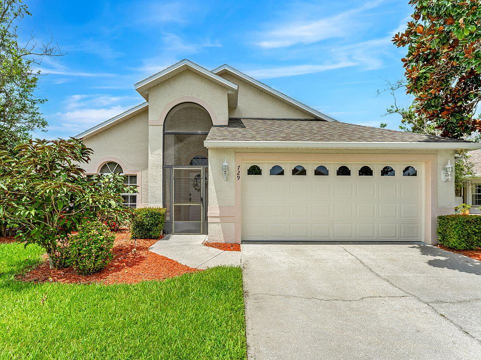 Discover your new home in the vibrant 55+ gated community of Compass Pointe! Enter this delightful and move-in ready 3BD/2BA PLUS office residence through the screened front porch to find vaulted ceilings & decorative nooks throughout. Plus No Carpet in this Home! Entertain guests in the open living-dining room combination or enjoy casual meals in the eat-in kitchen, complete with/ white appliances & breakfast bar. The primary bathroom offers dual sinks & large walk-in shower. Glass sliders from the primary bedroom, living room, & kitchen lead to the inviting extended lanai, perfect for relaxing. The roof was replaced in 2019, HVAC 2019 & H/W heater 2024. Compass Pointe offers a wealth of amenities, including a heated pool & spa, bocce ball, shuffleboard, a clubhouse, a fitness room, & weekly activities to keep you engaged. Located centrally, you're close to shopping, dining, golf, and the beautiful beaches. Embrace an active lifestyle in this wonderful community.