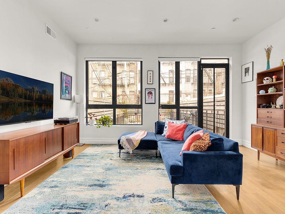 The recently constructed boutique condo building is situation on a quiet, leafy residential block with easy street parking in a trendy section of Bed-Stuy near cafes, shops, and transit with the J/Z trains around the corner, allowing for a quick commute to Manhattan. A communal roof deck affords sweeping views.