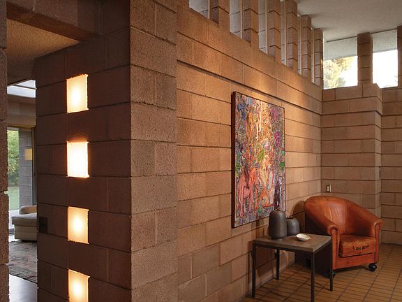 Mid-Century Modern home designed by Architect Charles Montooth who studied with Frank Lloyd Wright at Taliesin. 2nd owners. Gated home on secluded street. The concrete block is custom designed post and beam construction with glass and colored block curtain walls. Scored concrete flooring suspended staircase built-ins through out. Landscaping professionally done by Christy Ten Eyck Landscape Architects Inc. Almost acre lot with orchard of several variety of citrus trees mature landscaping sparkling diving pool & lots of grass. One of a kind property! Please see floorplan & addendums under documents tab.