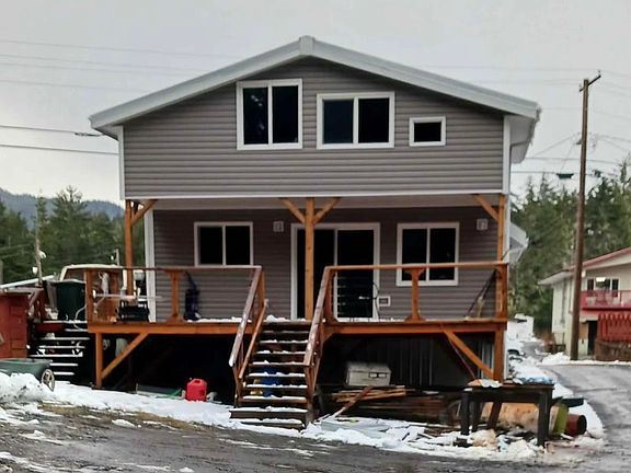 Inviting Wrangell Island Home with Garage & She Shed This 2-bedroom, 1.5-bath home offers both charm and functionality, featuring a single-car garage and a delightful she shed. Inside this well insulated home you'll find brand new laminate flooring, spacious carpeted bedrooms, and a kitchen with custom wood countertops and stainless steel appliances.