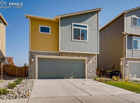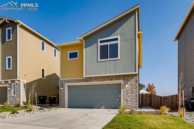 Just one year old with low-maintenance front and backyard, this loft-style Colorado Contemporary is turnkey. Incredible location convenient to the Powers Corridor, Peterson AFB, Fort Carson, local industry, and much more! The Patriot Park community includes an optional membership to the community center and pool. Exceptional floor plan offers an open living area with 2 private master suites on separate levels, perfect for income potential or plenty of privacy as a home office or guest room. The main living area can be found on the second level, including an open-concept living room and kitchen with breakfast peninsula and dining area. Convenient large pantry/laundry room. The second level master suite with large walk-in closet and spacious bathroom is situated at the end of the hall for added privacy. Oversized patio in the fenced backyard is ready for entertaining!