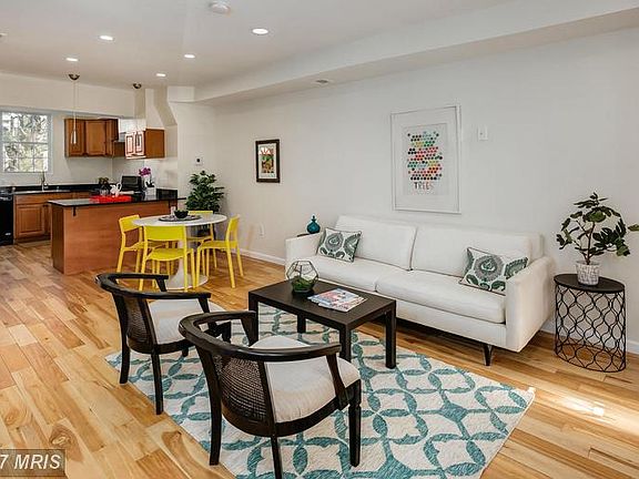 Renovated & sunny townhouse feat. welcoming front porch & 3 finished lvls! 2 LRG BRs w en suite BAs; finished LL w BA & sep. rear entrance. Open flr plan, chef~s KIT, lovely wood flrs thruout. HVAC & new windows. Patio & spacious deck = options for entertaining LRG or intimate gatherings. 2-car PKG. Close to dining, retail, parks, Metrorail & bus! Ask for KVS $500 buyer credit.