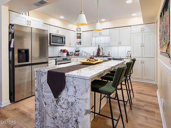 Lovely RENOVATED 3 BDRM 3 BATH CONDO IN FARRGUT. Open Floor plan with a large main floor master suite plus bedroom 2 on main floor with private full bath. Beautiful kitchen with granite tops & backsplash with large island. Also updated stainless steel appliances and new kitchen cabinetry, new flooring in great room and main floor bedrooms. Great room has spacious dining area and fireplace with gas logs. Up stairs is bedroom 3 and full bath. Bonus Rm / office area. has lg walk in closet and entrance to floored unfinished attic space for even more storage. The outside patio is recently replaced poured concrete which is very private with view of the woods. This one has it all with spacious rooms in meticulous condition & loads of storage space & 2 car garage all in a great location.
