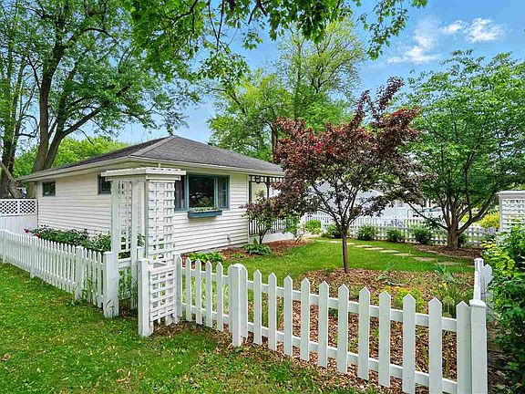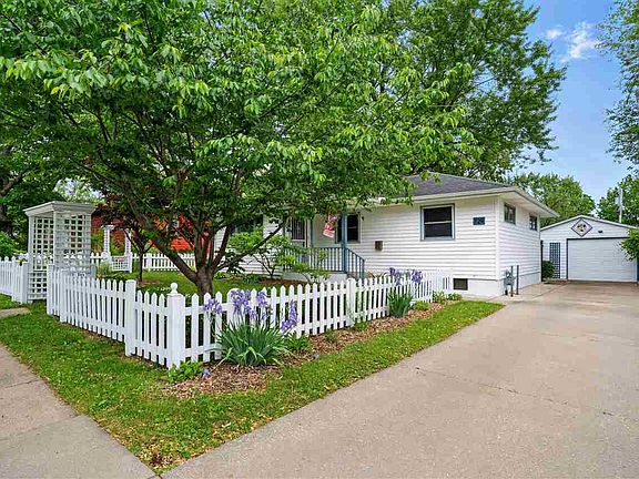 Tucked into a lush, green setting on the east side of Iowa City, this charming 3-bedroom, 2-bathroom ranch blends mid-century character with inviting outdoor spaces. The front and fully fenced backyard are a nature lover’s dream—with expanded perennial beds, fruit trees, a water fountain, fire pit, and a cozy reading shed accented by string lights. Built in 1959, the home retains much of its original charm, featuring hardwood floors throughout the main level and thoughtful vintage details. The partially finished lower level includes fresh carpet, a wet bar, and a full bath, along with a spacious unfinished area perfect for a workshop or creative space. A detached 1-stall garage completes the property, offering both functionality and curb appeal.