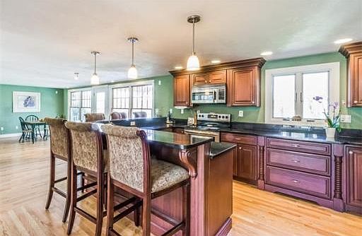 Direct waterfront home on prestigious Jerusalem Rd. with no flood insurance required! This lovely 11 RM, 5 BR, 4 BA Colonial sits directly on Straits Pond with 1.2 acres of land. This home was totally rebuilt and enlarged and features an open floor plan on the first floor. The new granite kitchen opens to the FP living room and large rear deck, perfect for entertaining. Direct water views from 9 of the 11 rooms! First floor includes bedroom or in home office, new full bath and formal dining rm. The grand 25 ft high foyer leads to the 4 BRs on the second floor. Master BR features FP, soaring 16 ft ceiling and newly remodeled bath. The third level family rm has a built in bar Beautiful hardwoods throughout this home. Lower level may serve as Au Pair suite with FP, kitchen area, private bath and separate entrance or used for additional living space. The original garage under has been re-purposed but may be restored if desired. This is a beautiful coastal property!