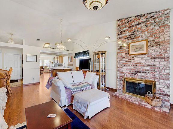Just what you've been looking for 1-level, move-in condition, 3 bedrooms, 2 full baths. Over 1400SF has inviting kitchen with laminate floors, plenty of tile countertops, spacious eat-in area in kitchen with electric free-standing stove and refrigerator. Vaulted ceilings in dining room and living room with brick fireplace. Enjoy vaulted ceilings in master bedroom with 2 closets, Master bathroom with shower has vanity counter space. Laundry room has washer and dryer. Good-sized rear yard has views of pastures through window fence. No rear neighbors but cows from time to time.