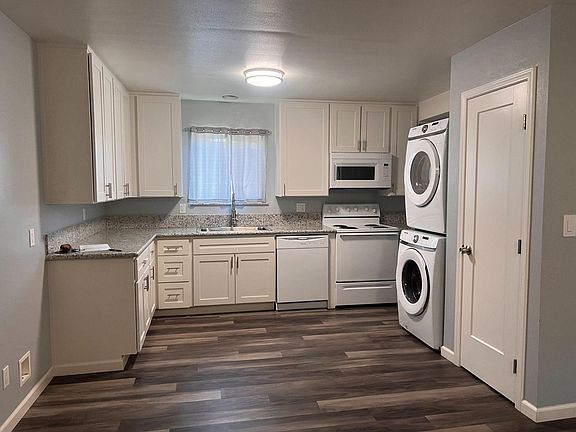 Check out this remodeled apartment complex within walking distance to downtown Visalia! The City Alcove apartment complex features tranquil, non-smoking, no pets, smart apartments with one and two bedroom units. These units have a modern open floor plan design, currently we have Unit 3 of the two bedroom units available, and it is downstairs apartment. Interior amenities include: Newer plumbing, electrical and insulation behind new sheetrocked walls Newer paint with modern calming color scheme Newer luxury vinyl plank flooring, baseboards, and casing Newer custom cabinets shaker style in kitchen and bathroom with pull handles Newer electric water heater inside heater closet Newer kitchen sink with new modern commercial single handle lever faucet Newer shower tile, tub, and toilet Newer granite countertops in kitchen and bath Newer modern square sink and faucet in bathroom Newer interior solid core shaker style doors (water heater closet, hall closet, bedrooms, and bathroom) Newer closet doors and shelving for bedrooms Newer shaker style front door Newer fans and lights in all bedrooms, bathrooms, living room, and kitchen Newer window coverings in living room and black out curtains in the bedrooms USB Dual outlets, one in each bedroom and living room Newer dual pane, low-e windows Cable ready in living room and bedrooms Smart features that work with Alexa and/or Google Assistant. Controllable and programmable with smartphone, tablet or computer with wifi connection. Instructions will be given for all smart features upon move in. Smart light dimmer switch in the kitchen Smart light non-dimmer switches in bathroom, exterior light, and above kitchen sink Smart ceiling fan control and dimmer light switch in bedrooms and living-room You can control the light brightness and the fan speed separately Honeywell Home smart thermostat Newer Appliances Newer Samsung full-size stackable washer and dryer Newer Amana over the range microwave Newer Frigidaire dishwasher Refrigerator included Exterior amenities include: Newer 7" redwood fence with metal posts Newer building posts and staircase upgrade Newer area for trash bins Newer landscape in front of complex as you drive into your sanctuary Newer paint and stucco Newer carport storage door with motion sensor light inside storage unit and new bollards in front of new storage door Newer motion sensor light in storage unit Newer modern exterior light by front door Included: Pest control, yard maintenance, and water, sewer, and trash service. Sorry, no pets allowed. 1 Year lease Common Area maintained. Carport parking Pest Control included Refrigerator, Washer and Dryer included
