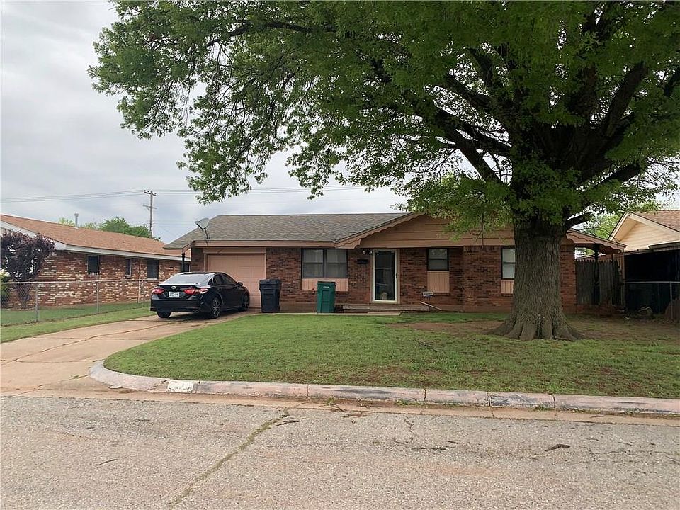 Great investment property. 3 bed, 1 bath & 1 car garage brick home. Kitchen large enough for a kitchen table. Fenced backyard. Good location to major highways and Oklahoma City amenities. Being sold "AS IS".