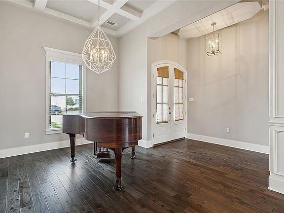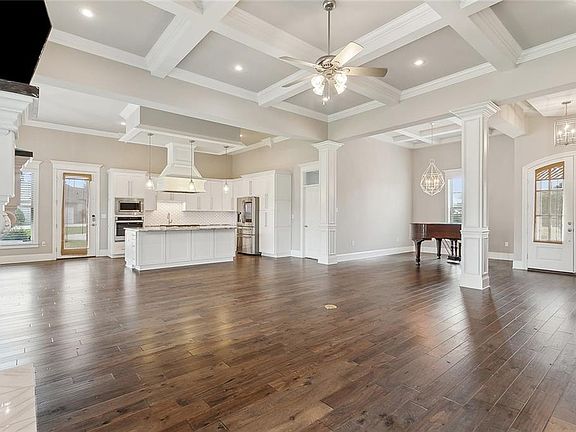 Sellers offering $15,000 towards Purchaser's closing costs!!! Custom built 4bd/3.5bth +office on corner lot in beloved Bedico Creek subdivision. This stunning home features 12ft ceilings and hand scraped engineered hardwood floors throughout open floor main living. Showstopper coffered ceiling and feature gas fireplace in living room, spacious dining and breakfast rooms, gourmet kitchen features granite counters, stainless appliances, undermount sink, tons of cabinetry with soft close doors and drawers for ample storage, gas cooktop and custom hood vent with glass pendant lights are sure to impress. Luxurious primary suite features trey ceiling and impressive ensuite with free standing soaking tub, dual vanities with quartz counters, oversized shower with rain head, and 2 custom built-out, walk-in closets. Guest bedrooms all have direct access to a bathroom. Private office space. Oversized laundry has sink and extra storage cabinets. Expansive covered patio overlooks fully fenced rear yard. Flood zone C! Two zone AC system. Blue Ribbon Schools. Gated community with resort style amenities: 2 pools with splash pad, lakes and ponds, 3.5 miles of paved walking trails, fishing ponds, 9-hole frisbee golf, hundreds of acres of greenspace & wildlife preserve, nature trails, playground, RV & boat storage, and more! A MUST SEE! Make it yours today!