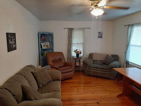 Move in ready home with big (.25 acre) yard and over sized 2 car garage! Perfect as a starter home or someone looking to downsize. 2 bed, 2 full bath with full basement. Master suite includes a 19x13 bedroom with 3 closets and a full bathroom. Kitchen includes wood cabinets, built in cutting board, dishwasher, range and refrigerator. Refinished hardwood floors in both bedrooms and the living room. New flooring (2020) in kitchen and dining room. Call your agent for a showing today!