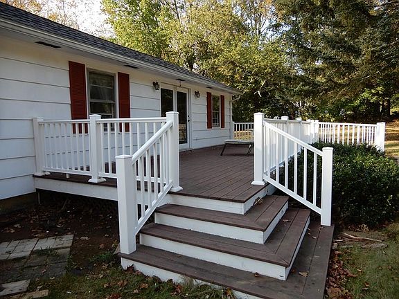 Pride of ownership shows in this charming 3 bedroom sprawling ranch home with so much character! Wait until you see the beautiful 1 acre level lot so picturesque. Sit in the sun room or the back deck and enjoy! Kitchen is packed with cabinets with dining area and bay window. Whether you are doing the dishes or having dinner you can enjoy the outside. Dining room offers picture window, wood stove, wood floors and built ins. Kitchen and bathroom have been remodeled over the years both with granite countertops. Spacious living room with french doors out to composite deck recently redone. Huge master and all bedrooms have ceiling fans. Full basement for storage and extra space. Bulkhead was redone to a dog house for easy access out from the basement. 2 car detached garage with work area and storage upstairs. A great home for all! New roof and house just painted! Fantastic location just off Rt 49 and mins to Mass pike, 20 and Rt 9! Seller installing new septic system.