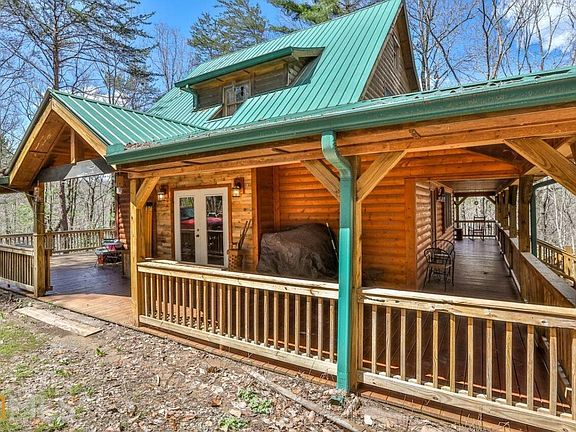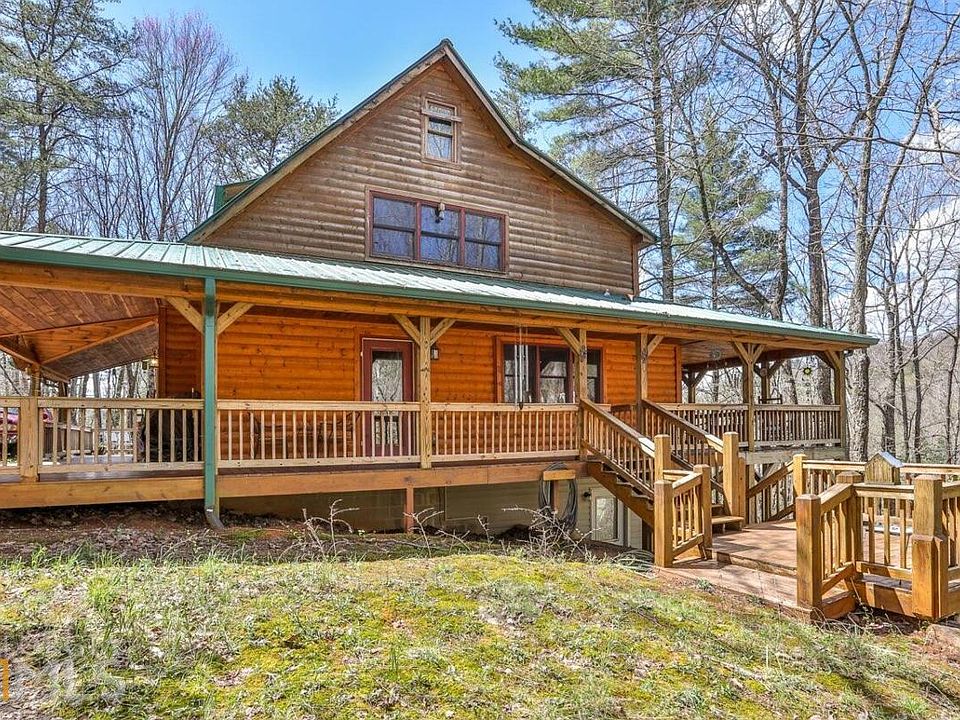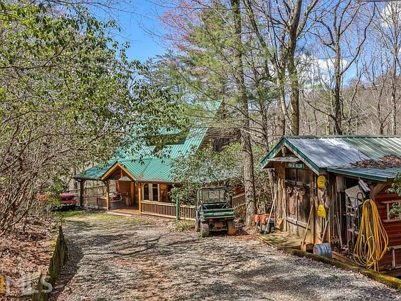 Delightful secluded cabin in the woods on over 3+ acres--come enjoy nature in this tree house feel setting (without having to climb!). Small brook on property, very large wrap around decks (covered and uncovered). Loft area, vaulted ceilings with plenty of natural light, open, oversized kitchen. Master bedroom w/ensuite bathroom on main level. Bedroom upstairs and additional room upstairs is used as a sleeping area. Gorgeous rock wood burning fireplace (complete with closet nearby for log storage), combination of tongue & groove and sheetrock. Outbuilding for extra storage/workshop. Located conveniently between Ellijay and Blue Ridge in very popular area. Neighbors own large land tracts - very private. Home warranty to be provided at closing!