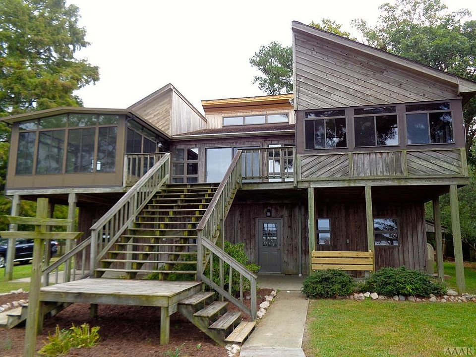 It's all about the VIEW! Looking for river front living? HUGE living space is the "heart" of the home. Master Bedroom has private bath, attached sun room and private entry to deck area where the river is always in view along with those amazing skies of a gorgeous sunset. Detached garage large enough to hold the RV or Boat and more. Working elevator, covered porch, bulk head, pier, dock and boat-lift.