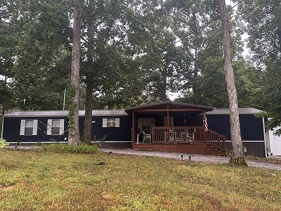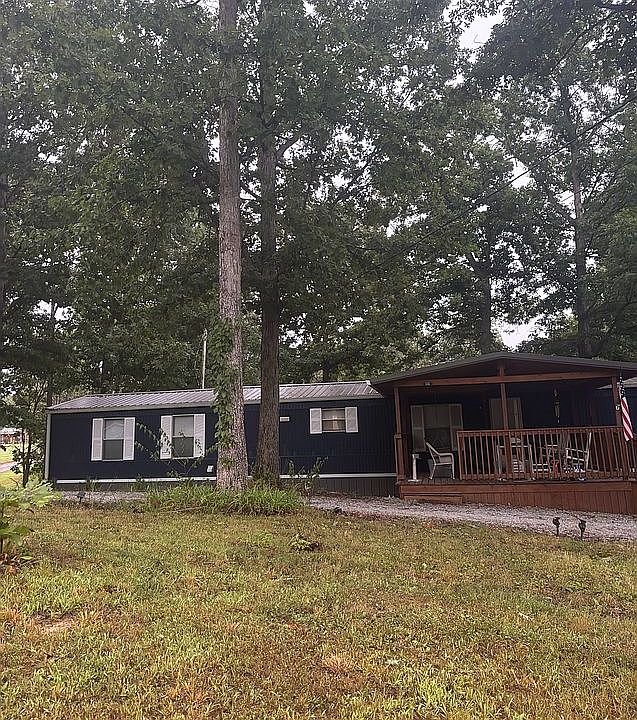 This unique property located within minutes of gorgeous Kentucky Lake and I-24/I-69 access may be just what you've been looking for in a home or a lake area retreat. A great place to relax on almost 8 acres of beautiful land with a 3 bedroom, 2 bath spacious manufactured home, not on permanent foundation. 2 car detached garage, and a separate building that has it's own breaker box, water heater, window unit, and it drains to the septic. The detached garage also has it's own breaker box, gas wall heater and drains to the septic. The acreage is a mix of level and rolling land that is cleared, as well as some wooded areas. It's peaceful and quiet, and there are so many possibilities for this property. New heat and ac unit , New underneath and roof insulation. metal roof and metal under pinning in 2021. 16x16 covered front and back decks added 2021. vinal plank floors, paint, large hot water heater 2021. extra driveway for camper or extra parking plenty of space to build another house also.AS IS