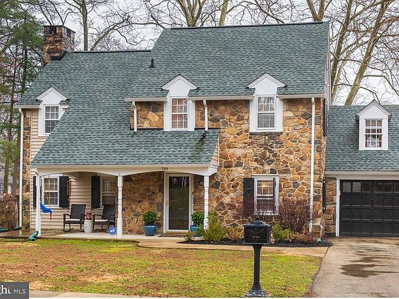 Welcome home to this beautifully maintained, classic 2 story stone colonial. Located on a coveted street in Bryn Mawr, this prime location is walkable to Preston Park, the Polo Field, and Haverford College Trails. Explore the burgeoning restaurant scene in both Bryn Mawr and Haverford, while also taking advantage of easy access to public transportation. The curb appeal begins with a charming front covered porch and real stone front facade. Once inside, you will be enchanted by classic old home features - deep window sills, a floor to ceiling stone fireplace, gleaming random width hardwood floors, original solid doors and extra high floor molding. An open floor plan highlights a bright white kitchen with granite counter tops and gas cooking, center island with stool seating, dining room accented with wainscoting and a 6 light rectangular chandelier. Additional recessed lighting with dimmers provides ample light with opportunity for mood lighting. The wide hallway at the entrance offers a coat closet and convenient powder room. On the other side of the entry hallway is a spacious living room, a perfect place for family gatherings around the fireplace. Recessed lighting and handsome brass wall sconces with dimmers create the perfect ambiance for any occasion. Step down from the living room into a sun-filled, multi-purpose room which is currently being used as a family room but could also serve as a large office. This room leads to the backyard patio and is also accessible from the kitchen creating a circular flow for entertaining. The impressive master suite includes a roomy bedroom with hardwood floors, two oversized closets, and a luxurious bathroom. The bathroom consists of a soaking tub, a seamless glass shower, double sink with a vanity, a full wall mirror and skylights. A full bathroom with tub-shower combination and two additional bedrooms plus a small bonus room complete the second floor. Other features include new HVAC (2018), new roof (2016), new siding (2016