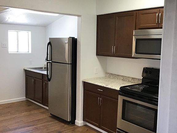 New kitchen cabinets and hardwood laminate flooring. Modern bathroom and kitchen, stainless appliances. Recently painted and renovated. Off street parking at back of unit. Newer AC units and water heater, double pane windows. No Pets, three times the monthly rent in verifiable income required. Tenant must pass basic background check. 12 month lease at $700. 6 month lease available also. Laundry hook ups in unit, can provide washer and dryer for $50 a month if requested.