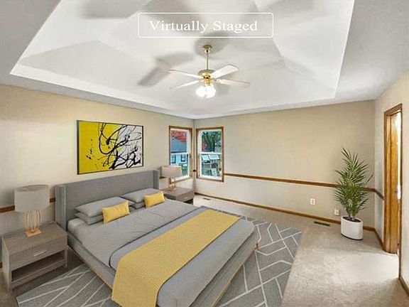 Hardwoods in the spacious kitchen and formal dining, fireplace in the living room, tray ceiling in the Master which is complete with a whirlpool tub, deck in the fenced backyard. Finished basement for extra living space.