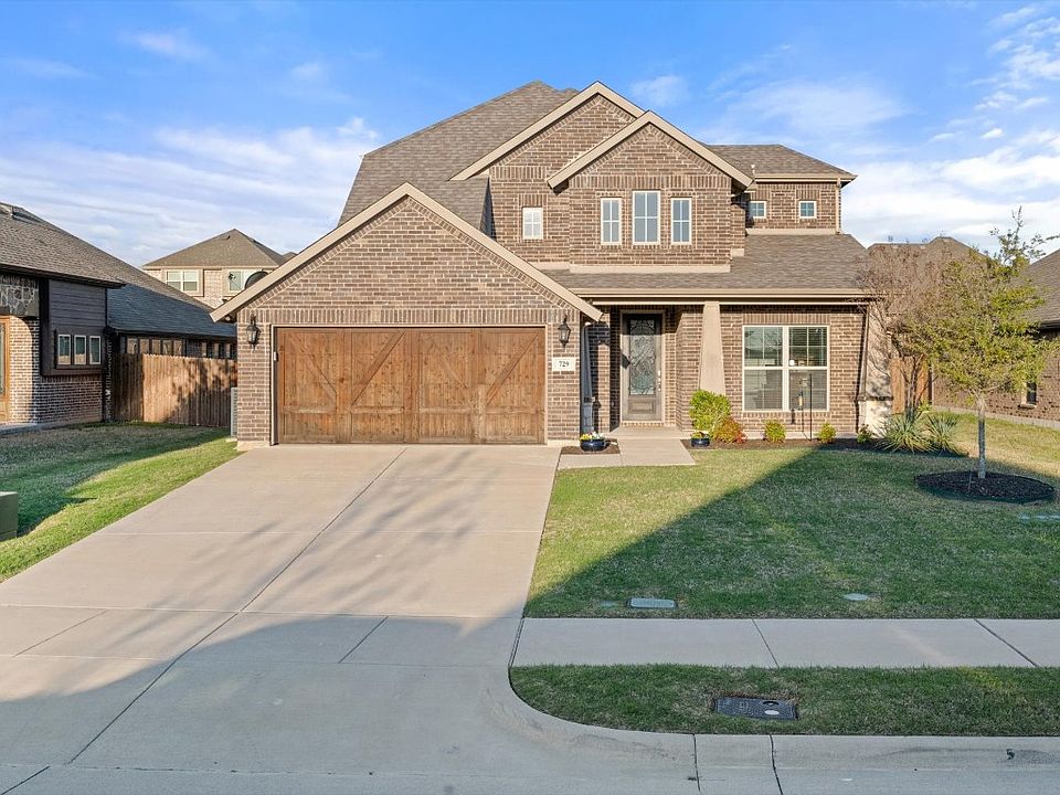 Step into this meticulously designed home, where every detail contributes to an inviting and cozy atmosphere. The curb appeal is heightened by the expansive front porch, featuring an elegant 8-foot door. Inside, discover the warmth of wood flooring, a private study and spacious rooms. The fantastic kitchen showcases stainless steel appliances, leather-finished granite countertops, and a generously sized island, perfect for both meal prep and entertaining. Custom painted cabinets and a 5 x 5 pantry add practical elegance. The primary suite is generously sized, and the bathroom features separate vanities, a luxurious shower, and a large walk-in closet. Upstairs, three spacious bedrooms share a bath, and an adaptable 8 x 6 room is ideal for crafts, studying, or extra storage. Finally, the large, covered patio, complete with a privacy wall, invites outdoor relaxation and makes entertaining a breeze. The oversized garage includes a bump-out area for a workbench or additional storage.