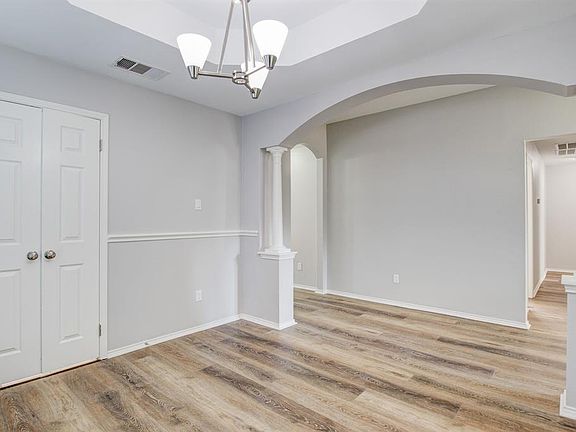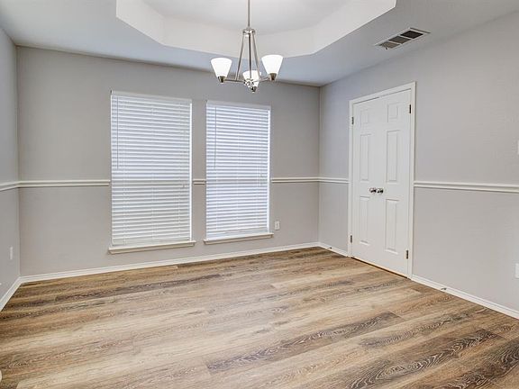 Don't miss out on this gorgeous property in Lewisville ISD! Beautiful 4 bedroom home with a formal dining located next to the entry. Open concept kitchen with vaulted ceilings, black stainless steel appliances, and a beautiful butcher block style island. Living room includes numerous windows and a wood burning fireplace with a gas starter. Split floorpan with the master bedroom and en suite bathroom separate from the other three large bedrooms. Recent updates include fresh paint throughout, upgraded COREtec Pro Plus vinyl plank flooring, door hardware, light fixtures, and more! HVAC replaced in September 2020. Fence replaced August 2020.