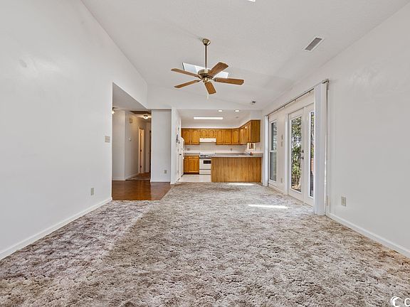Discover the potential of this charming 2 bed, 2 bath single-story home in the heart of Ocean Oaks Plantation, North Myrtle Beach! Located just a golf cart ride away from the picturesque beaches and oceanfront attractions, this home is the perfect combination of location and affordability. Step inside and be greeted by an open floor plan with plenty of natural light shining through the skylights in the living room. The separate laundry room and walk-in closet in the master bedroom provide added convenience and storage space. Take advantage of the low HOA fees and enjoy a fresh start with the exterior of the home freshly painted and ready for you to move in. The backyard is a peaceful oasis, surrounded by mature trees and features a retractable awning and a back deck, the perfect place for a morning coffee or an evening beverage. Don't miss this opportunity to own a piece of paradise in one of the most sought-after communities in North Myrtle Beach. Priced to sell, this home is an incredible value and a must-see for anyone in the market for a beach home. Book your showing today!