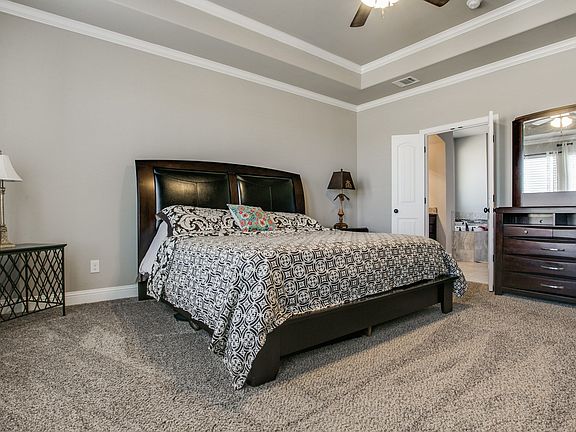 Stunning Texas Heritage custom home less than 1 year old in gated Texanna Ranch! Half acre+ lot backs to pasture land with horses. Upgrades galore including hand scraped hard wood floors, granite, crown molding, $5000+ fence, and CCTV 8 camera video surveillance system. High end detailing in every room. Huge family room open to kitchen with stone bar, stainless steel appliances, custom cabinets and granite counters. Two fireplaces -one on pati