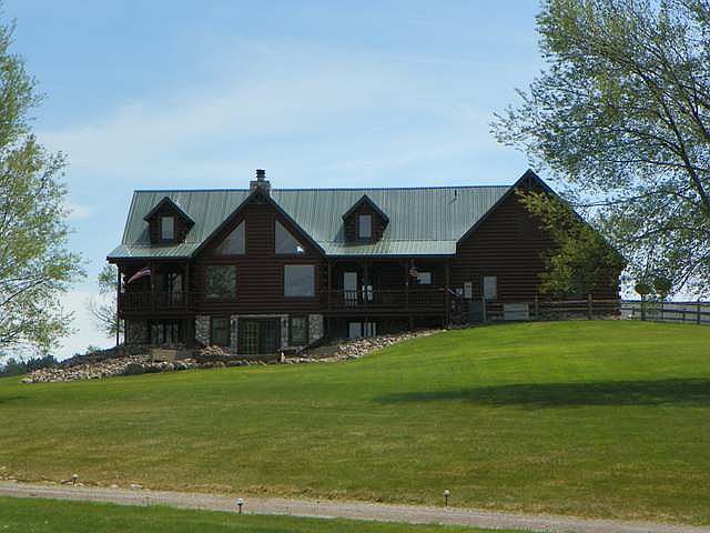 Horse lovers delight, hunters dream, this Fabulous 3600+ sq ft Russell built Log Home on 40 acres has it all! Home offers: 4 bedrooms, 4 bathrooms, stone fireplace, sprinkler system, pond, all this just for starters. Now add the attached 2 car, walkout finished basement, 52x30 pole barn with second story storage with 2 10' overhangs, horse stable, pig pen, ALL HEATED, electric corral, pasture and woods to top it all off. Call for private showing. "ONE, can have it ALL" Property lines are clear with fences. All buildings on property have steal roofs (2012)Horse stable has 5 stalls inside and 3 stalls outside, also 3 separate corrals. Home has backup Generac 20,000 generator.