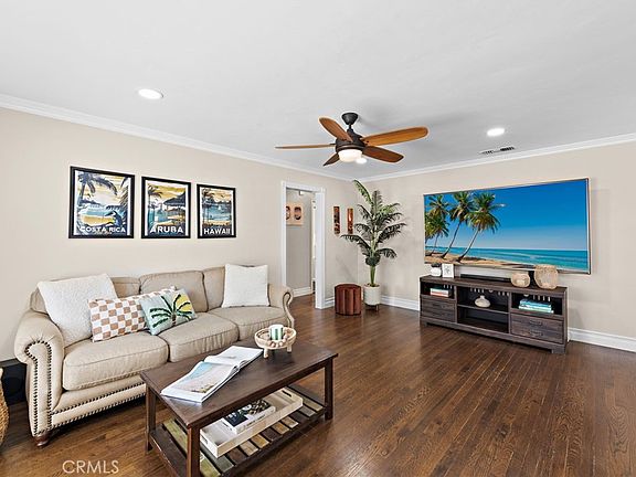 Located on a large corner lot in one of Fullerton’s finest downtown neighborhoods! This charming 2 bedroom, vintage 1943 Craftsman style bungalow is spacious and an entertainers delight. Enjoy the large front yard, inviting porch, lush landscaping and long walkway with brick trim. Hardwood flooring, crown molding and newer windows throughout. Living room open to dining room surrounded by windows providing an abundance of natural light. Remodeled kitchen with white cabinets, Quartz counter tops, tile backsplash, stainless steel appliances and arched dining nook that overlook the backyard. Master bedroom with double door closet and completely remodeled bath featuring tiled shower with glass enclosure, dual vanity, lighted mirror and tile flooring. Large secondary bedroom completes the interior. Private backyard with lush landscaping and large covered patio make it the perfect yard for entertaining. Detached 2 car garage with access from the front or backyard. All the expensive updating has been done for you! This unique home is located in the heart of downtown Fullerton just a short walk to arts, culture and fine dining.