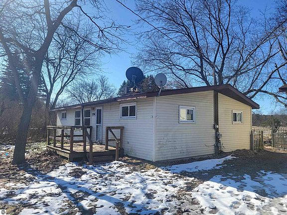 Village of Thompsonville, 3 bedroom 1 bath frame built home with paved driveway, 2 car detached garage on large 1.74 acre lot that backs up to hundreds or acres of state land. The house appears to have good bones but needs some cosmetic repair/updates but could make a good home, rental/investment property. The high quality kitchen cabinets are in good shape saving money on renovation cost. Flooring has been removed in house. Betsie River just down the street, Crystal Mountain 2 minutes away. Bike, RV, snowmobile trails just minutes away.