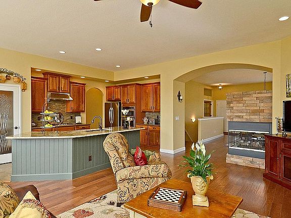 Beautifully updated home that is surrounded by open space on three sides! Main floor living at its best with the master bedroom, laundry and office all on the main floor. Beautiful wide plank wood flooring. A 3- sided stacked stone fireplace opens to the family room and the formal dining room. Gourmet kitchen with gas cooktop, large island and stunning glass mosaic backsplash. Walk-in pantry. The great room has large windows that create a beautifully lit space to enjoy relaxing with friends and family. The formal dining and living room blend seamlessly together to make an engaging formal entertaining space. The main floor office also has large windows and glass French doors to allow in amazing light. 10' ceilings throughout the main floor. The spacious master suite has a bay window that overlooks the gorgeous backyard and open space behind this home. The updated master bath has a large shower with a bench, soaking tub, dual sinks and a large walk in closet with a built-in closet system to maximize space. The guest bath has also been updated with granite counters and beautiful floor and shower tile. The spacious main floor laundry room has a utility sink and is a great drop area coming directly off the garage. Oil rubbed bronze light fixtures and door hardware are throughout the home. The brick backyard patio provides the perfect space to enjoy your time outdoors. With open space behind and to the side, the privacy in this backyard is amazing. Great neighborhood pool. Access to the walking trails in the cul de sac in front of your home. Partially finished basement with a 22 x 14 room that was used as a woodworking shop. But this room could make a great play room, rec room, workout room or home theatre. Or finish out the rest of the basement to add a guest bedroom and bathroom while still having lots of storage space. The oversized 3 car garage has one bay that is 26.3' deep with the other two bays 22.3' deep. 1 Year Home Warranty included!