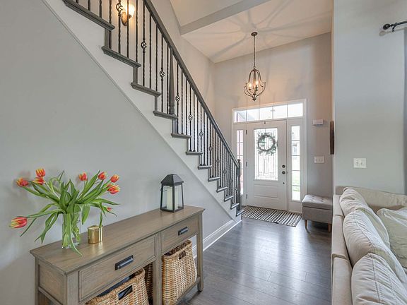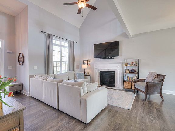 This red adorable like new home, built in 2020 is turn-key and sits on a private fully fenced-in flat lot backing up to 3.5 private wooded acres owned by the HOA. The Walnut Grove neighborhood is conveniently located between Nashville and Clarksville and is situated steps from the amazing community park, which features a wonderful playground, basketball courts, and soccer fields! The Brewster plan from Frank Betz features beautiful Hardie siding with brick-to-grade, stainless steel appliances, vaulted ceilings in the living room, open-concept living, and LVP flooring. Primary suite on main level, a spacious 2 car garage, and a wonderful covered porch overlooking the lush landscape. Upstairs you will find 2 bedrooms, one full bath, a large bonus room over the garage, and two versatile spaces including a loft currently shown as an office, and a cozy study nook being used as an additional living space.