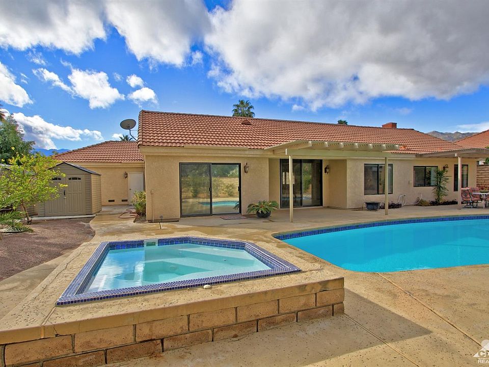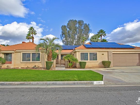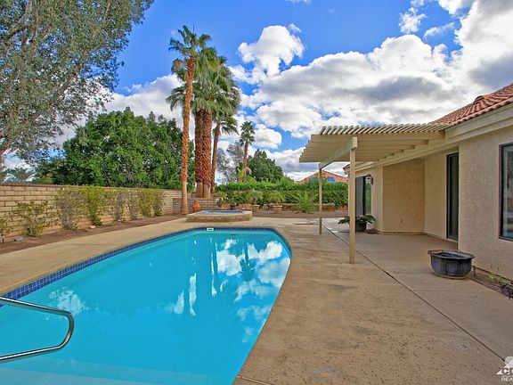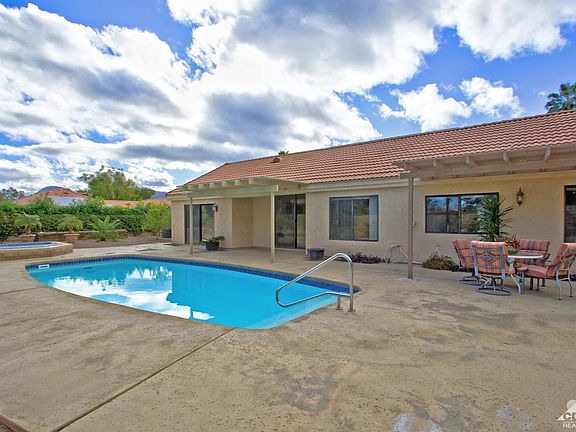Investors behold this great 4 + 3 pool/spa home in prestigious Canyon Cove. Live in this desirable location of South Palm Desert, close to El Paseo,shopping centers, the best restaurants and theaters. Buy the lowest priced home in the best neighborhood they say...well here it is. Almost 2200 sq ft with NO H.O.A. dues AND the Solar system has been installed and paid for! Monthly electric bill has averaged appx $145 a month. This private 1/4 acre lot has no home behind it and is on a quiet and peaceful no outlet street. Large pool/spa with two covered patios. Master has a very expensive step in-sit down bath tub/spa and a separate shower. Just add your own personal upgrades to this property and you have yourself a winner!