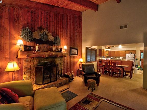 Zig Zag Village home that is a nightly rental with tons of room and open floor plan. Forested view towards the Sandy River a short walk away. Cozy fireplace and big deck off the living room. Upstairs has two bedrooms. Lower level has a huge family room with wood stove and bunk room with 3 sets of bunkbeds and a half bath! Slider to the campfire in the backyard. Pool and tennis court amenities. 25 min. to slopes, close to hiking too!