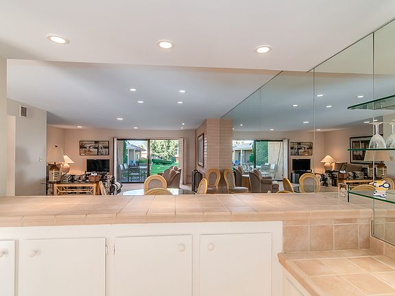 South Palm Desert location! Mountain Views! Furniture Included! Three Bedroom! Located High up in the hills of South Palm Desert this intimate 100 unit community offers the best of active lifestyles. Featuring three bedroom ,two bath, spacious single level home in a park like setting surrounded by breathtaking mountain views. This home features a spacious kitchen with breakfast bar that opens to great room with fireplace. The over-sized master bedroom suite with walk in closet is close to the Pool and Spa. Additional features are the beautiful clubhouse with fireplace, billiard room, library(computer and internet access),and fitness center. Six swimming pools and five spas complete the lavish and intimate 20 acres club. HOA includes tennis, pickle ball and social along with eight lighted championship tennis court and on site tennis pro and tennis coordinator during the season.