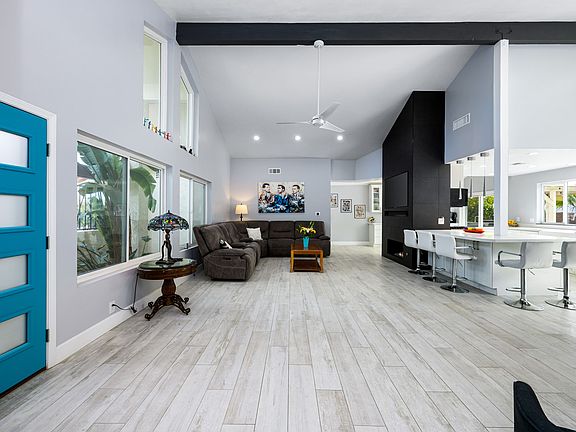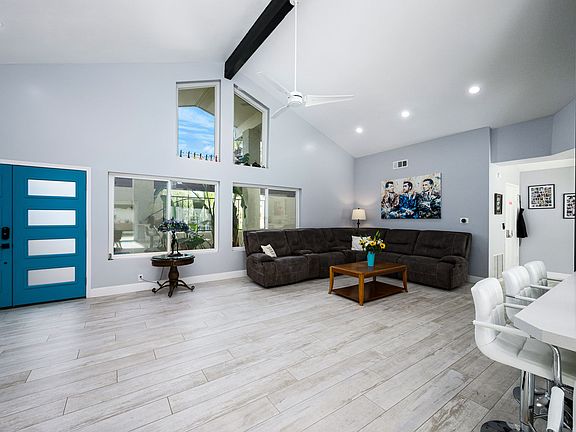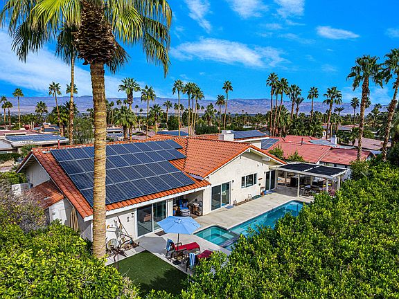 This charming home in South Palm Desert offers a very desirable neighborhood and modern features, perfect for those seeking luxury and comfort. With a vaulted ceiling and open floor plan, the living space is bright and airy. The floor-to-ceiling tiled gas fireplace in the living room adds warmth and elegance, while the tiled flooring throughout creates a seamless, contemporary feel. The gourmet kitchen is a chef's dream, featuring sleek quartz countertops, ample storage, and stainless steel appliances. The spacious primary bedroom includes a dual vanity and a generously sized walk-in tile shower, providing a spa-like experience. Enjoy outdoor living with a fully equipped kitchen, multiple firepits, and a private entertaining yard that offers stunning mountain views. The home also boasts a solar-owned system for energy efficiency and cost savings. Designer light fixtures and modern renovations throughout the home give it a stylish, contemporary feel. Additional feature include electric fireplaces in the bedrooms. With convenient access to renowned El Paseo for high-end shopping and dining, as well as nearby hiking trails, this home provides the perfect balance of luxury and location. Owner pays for all utilities, pool service and gardener not to exceed 1K monthly, 6K monthly is for off season rates. High season January to April monthly rent is 9K