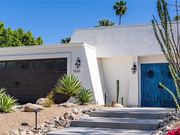 Stunning South Palm Desert Home – A Must-See! Located just minutes from El Paseo's vibrant shops, dining, and top attractions, this beautifully renovated home offers exceptional value, listed significantly below its recent appraisal. Thoughtfully updated in 2024, the home features a resurfaced pool with a new heater and pump, making it perfect for year-round enjoyment. Step through rustic elegant blue double doors into an enclosed courtyard, revealing a meticulously designed interior. The chef’s kitchen boasts quartz countertops, luxury appliances, white oak cabinets, and a spacious island, ideal for cooking and entertaining. The primary suite serves as a peaceful retreat with courtyard views, a spa-like ensuite, and a custom walk-in closet, while two additional bedrooms provide ample space, including one with a private retreat and backyard access. The living room, with its striking quartz fireplace, seamlessly connects to the outdoors through expansive folding patio doors. These lead to a private backyard oasis featuring a resurfaced pool, wrap-around wood patio cover, and breathtaking mountain views. Additional highlights include a two-car garage, potential RV/boat parking, and an upper deck perfect for unwinding. With upgrades like a new energy-efficient roof, windows, lighting, plumbing, and electrical systems, this move-in-ready home combines modern luxury with desert charm. Don’t miss this incredible opportunity to own a South Palm Desert gem!